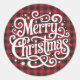 Adesivo Redondo Feliz Natal em Xadrez de Búfalo Vermelho e Preto S