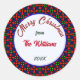 Personalize seus autocolantes de Natal com este modelo com fundo de vidro manchado. O nome da família e o ano são editáveis.