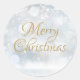 Feliz Natal clássico e festivo, adesivo de Feliz Natal para você personalizar com sua própria mensagem em tipografia de ouro em um fundo de gelo de inverno. Projetado por Thisnotme©