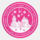 Feliz Natal Feliz Feriados de inverno Etiquetas personalizadas de Etiquetas de nome de inverno mostram o texto "Feliz Natal e Felizes Feriados" em um roteiro branco moderno, em um fundo cor-de-rosa, e personalizadas com seu nome em volta de uma casa com árvores de Natal e flocos de neve. Perfeito para favoritos para festas de Natal e presentes de Natal ou no escritório para produtos ou correio. Elaborado por ©Evco Studio www.zazzle.com/store/evcostudio