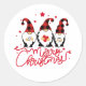 Esta na moda e este adesivo de Natal minimalista apresenta gnomos bonitos e um roteiro de caligrafia lúgubre em vermelho. Façam as saudações de sua estação especial nesta temporada de festas e comemorem a alegria do Natal com este adesivo festivo e animador de férias