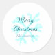 Adesivo Redondo Feliz Natal flocos de neve azuis brilhando
