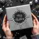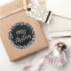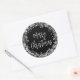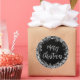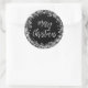 Estrelas prateadas cintilantes, círculos e pontos rodeiam as palavras "Feliz Natal" em autocolantes redondos pretos são perfeitas para o seu presente de Natal e muito mais. CORRESPONDENDO a itens na nossa loja.