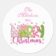 Adesivo Redondo Feliz Natal Glitter Verde Rosa