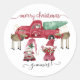 "Feliz Natal Gnome Watercolor Red Truck Classic Round Sticker." Fazenda de árvore da família Gnomo com caminhão vermelho e design de renas. Feliz Natal, Gnomies! Toda trabalho de arte foi pintada em aquarela por uma artista e designer internacionalmente licenciada, Audrey Jeanne Roberts, autora.