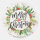Adesivo Redondo Feliz Natal Holly Floral Wreath Holiday Deseja