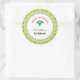 Este adesivo redondo apresenta um padrão de Natal verde em fundo dourado, um círculo branco no centro com o texto: MERRY CHRISTMAS da cozinha de: (e texto personalizável para você adicionar seu nome). Este adesivo personalizado é perfeito para selar doces de Natal que você fez como presente para uma pessoa especial.
