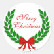 Adesivo Redondo Feliz Natal Laurel Leaf Wreath e Red Arco