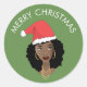 Adesivo Redondo Feliz Natal, Mulher Negra, Chapéu Negra Vermelho,