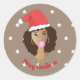 Adesivo Redondo Feliz Natal! Mulher Negra, Santa Chapéu, Goma, Est