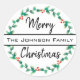 Adesivo Redondo Feliz Natal Nome Pessoal da Família Holly Wreath