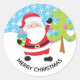O adesivo de Natal Whimsical apresenta o Pai Natal como um presente e acenando para você de um fundo de neve. O texto, em baixo vai o adesivo, "Feliz Natal" pode ser personalizado. Estes adesivos são excelentes para pacotes e envelopes de cartão de Natal.