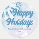 Este belo adesivo de festas de inverno apresenta flocos de neve brancos bonito ao lado de Feliz Feriados escritos em elegante cursivo sobre o seu nome comercial. Personalize esta maravilhosa decoração de Natal da empresa.