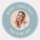 Autocolantes personalizados de cartões de Natal Feliz com seu fotão personalizado com seu nome. Eles apresentam um espírito de natal bonito, estético de fundo azul de inverno, sua própria foto e um rótulo personalizável para todos os seus cartões de Natal, presentes de Natal, mensagens de Natal ou quaisquer favores de festas de Natal. Personalize o texto e a foto conforme precisar para trazer uma alegria alegria de natal