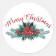 Feliz Natal Pinheiro Galho Azevinho Baga Poinsettia Adesivo Redondo Clássico