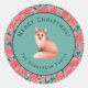 Adesivo Redondo Feliz Natal Poinsettia Personalizada Fox