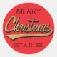 Feliz Natal Retro-Stickers Round. "Retro Feliz Natal EST A.D. 336" Divirta-se usando esses adesivos como topos de bolo, etiquetas de presentes, fechos de malas ou qualquer coisa que apodreça suas festividades! Personalize excluindo "Feliz" e "EST D 336" e adicionando suas próprias palavras, usando seu estilo de fonte, tamanho e cor favoritos. Obrigados para parar e comprar! Seu negócio é muito apreciado! Feliz Natal! Forma: adesivo redondo clássico Faça o seu estilo único criando adesivos personalizados para cada ocasião! De envios especiais e reservas para atividades infantis e projetos DIY, você encontrará esses adesivos como excelente para tantos usos. Adicione seus próprios designs, padrões, texto e imagens! Dimensões: Disponível em 2 tamanhos: grande: 3" de diâmetro, 6 adesivos por folha Pequeno: 1,5" de diâmetro, 20 adesivos por folha Impressos em papel branco isento de ácido Vibrante de cor de cheio, impressão de cheio resistente ao cratch Frente, fácil pele e colagem traseira