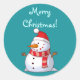 Um bonitinho bonitinho bonitinho de Natal que é meio gordinho e alegre vestindo um cachecol listrado e um chapéu de natal vermelho. Festivo e divertido.