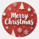 Adesivo Redondo Feliz Natal sobre um fundo vermelho