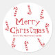 Feliz Natal personalize os adesivos de presente de presente Feliz Natal Feliz, nomes e data rodeados de doce de cana vermelho e branco