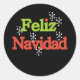 O texto vermelho e verde com flocos de neve brancos diz "Feliz Navidad" em cartões de cartões de natal, canecas, sacos de tote, botões, T-shirts e muito mais.