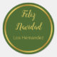 Adesivo Redondo Feliz Navidad Oro y Verde Oscuro con Nombre