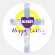 Adesivo Redondo Feliz Páscoa Céu Azul Cruz Dia da Ressurreição