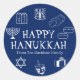 Feliz Hanukkah, personalize o nome da família, favoreça adesivos Feliz Hanukkah, Feliz Chanukah, Hanukkah Sameach!, Chag Sameach!, Chag Urim Sameach! Marinho azul e branco