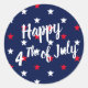 Adesivo Redondo Feliz quarto de julho, estrelas marinhos brancas a