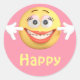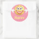 Adesivo Redondo Feliz Rapariga Emoji Emoticon Cartoon Face