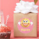 A clássica expressão facial emoji amarela emoji "Happy" emoticon com a palavra feliz escrita sob o rosto. Edite facilmente o texto, a fonte, o tamanho e a cor com o modelo fornecido. Pegue alguns desses adesivos de qualidade hoje!