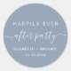 Um adesivo azul moderno e empoeirado para sua recepção de casamento ou convites de festas postes, favores e correspondência com "Felizmente Nunca Depois da Festa" em uma mistura de uma simples tipografia branca e um roteiro na moda branco com pestanas, seus primeiros nomes e a data.