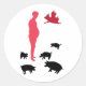 Feliz refeição, adesivo temático vegetariano - um homem gordo e porco anjo rosa, tema de arte para fazer você pensar sobre não comer animais.