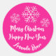 Adesivo Redondo Feliz Script de Natal Nome Snowflake Bright Rosa