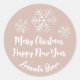 Adesivo Redondo Feliz Script de Natal Nome Snowflake Cinza