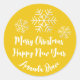 Adesivo Redondo Feliz Script de Natal Nome Snowflake Cinza Amarelo