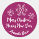 Adesivo Redondo Feliz Script de Natal Nome Snowflake Cinza Pink