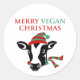Adesivo Redondo Feliz Vegan Natal, Vaca,