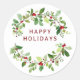 Adesivo Redondo Felizes Feriados Aquarela Natal Botânico