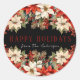 Poinsettias Happy Holidays, clássico adesivo redondo. Adicione o nome da sua família como uma assinatura. Fácil de manter uma variação de itens para um toque extra sazonal e uma etiqueta de saudação familiar. Use isto para sua correspondência de Natal, cartões de natal e convites, presentes, presentes e outros. Disponível em diferentes formas, tamanhos e variações de cor.