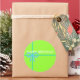 Um adesivo brilhante de verde limão amarrado com um arco aqua perfeito! Este adesivo parece fabuloso em papel rosa quente, aqua, e até mesmo em papel de tecido laranja!! Uma maneira simples de vestir um pacote.
