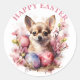 Adesivo Redondo Felz pascoa Chihuahua Ovos e Flores -