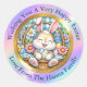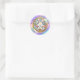 Adesivo Redondo Felz pascoa com coelhinhos, ovos e flocos
