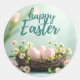 Adesivo Redondo Felz pascoa com ovos num ninho