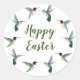 Vinhetas de Felz pascoa bonito com beija-flores de garganta rubi em fundo branco. O beija-flor arruinado (Archilochus colubris) é um pássaro minúsculo com uma esmeralda verde, máscara negra, coroa verde e garganta vermelha brilhante. Pode ser encontrada em matas abertas, bordas florestais, prados, prados, prados, e em parques, jardins e quintais perto de beija-flores e flores em forma de tubo.