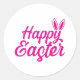 Adesivo Redondo Felz pascoa, Orelhas Coelhinhas Em Texto Rosa