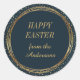 Você está procurando um Elegante e Dourado Felz pascoa da Família Católica Azul, Noite da Estrela, não olhe mais. Este adesivo colorido de páscoa de aquarela é criado com um elegante padrão azul noturno da estrela dourada moderna. No centro, há um círculo de ouros com saudações de páscoa. Você pode personalizar suas saudações de Felz pascoa e seu nome de família. Descubra mais com a nossa Coleção de Páscoas de Ressurreição Católica Elegante. Felz pascoa!