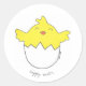 Este adesivo é impresso com um frango para bebês desenhado à mão, feliz e parcialmente eclodido.