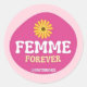 Adesivo Redondo Femme Forever Lesbian Sticker Pink Flower