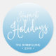 Adesivo redondo Feriados Feriados mais Felizes, com as palavras "Feriados Mais Felizes" num script de pincel divertido contra um fundo de gradiente azul. Faz um adesivo de excelente nos feriados de Natal/inverno. Veja outros itens de feriado aqui https://www.zazzle.com/collections/holiday_christmas_new_year_cards-119015800351034065?rf=238364477188679314 Personalize-o substituindo o texto do marcador de posição. Para obter mais opções, clique no botão "Personalizar". *Observe que a Marca d'água do Zazzle que aparece na visualização de zoom NÃO aparecerá no produto impresso final. © Rosewood e Citrus